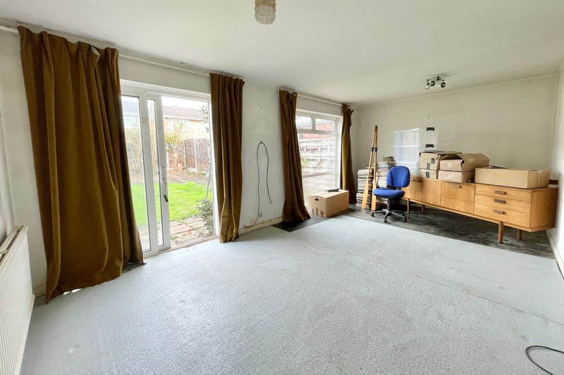 Accommodation downstairs comprises; an entrance hall, a kitchen, and an open plan living/dining room with sliding doors out to the rear garden. Also on the ground floor is an internal garage, that is suitable for conversion to an additional reception room. Upstairs there are three double bedrooms with fitted wardrobes and cupboards, a family bathroom and separate cloak room. Outside is a rear garden with patio area and to the front is a driveway and area laid to lawn.