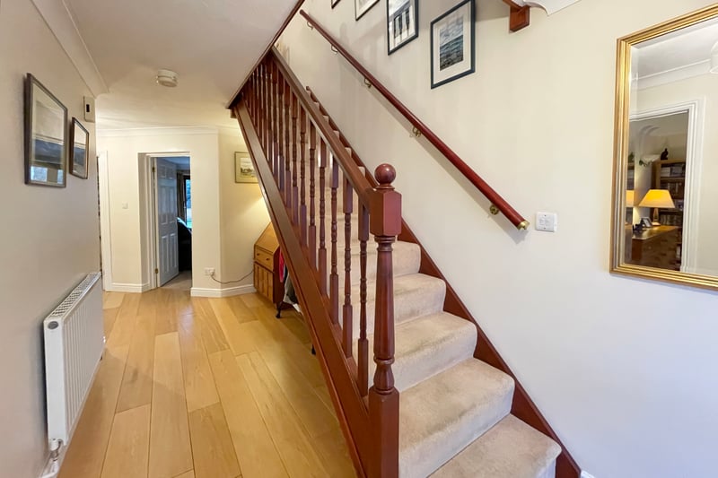 Accommodation on the ground floor comprises; a large, welcoming entrance hall with engineered oak flooring, a capacious living room with views over the secluded rear garden and with a feature fireplace. An open-plan kitchen/breakfast room with a separate utility room. The kitchen has large integrated fridge and freezer, gas hob, double oven and a dishwasher. Also downstairs, is a generous study with a fitted desk and storage, a snug sitting room and a downstairs cloakroom. Upstairs are four double bedrooms, the main bedroom in particular is very large. Two of the bedrooms upstairs benefit from en-suite bathrooms, three of the four bedrooms benefit from fitted wardrobes whilst the other has fitted storage. There is also a family bathroom.
