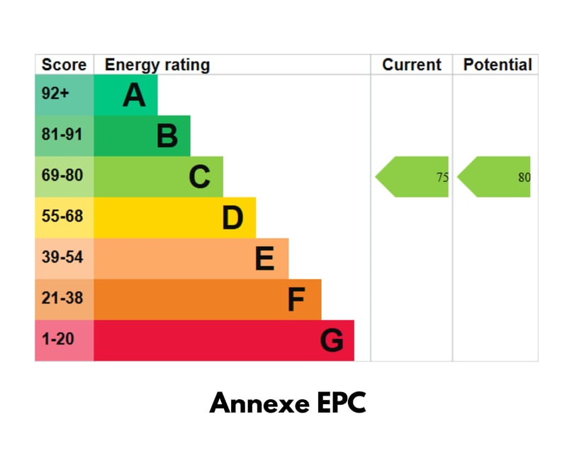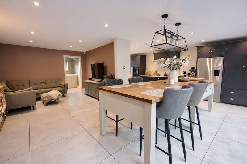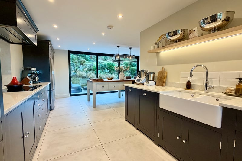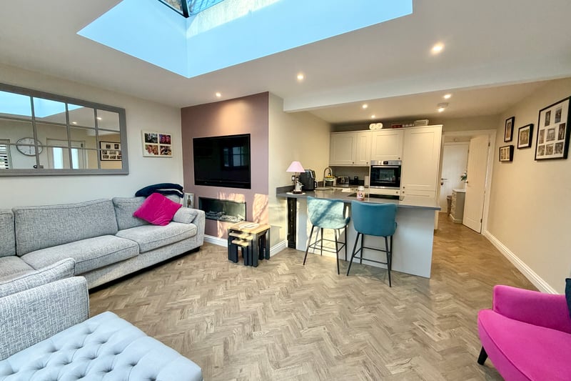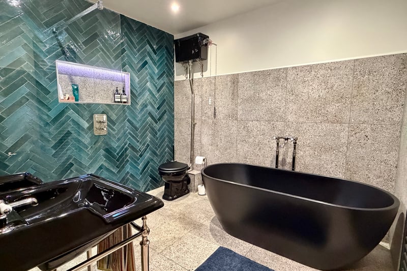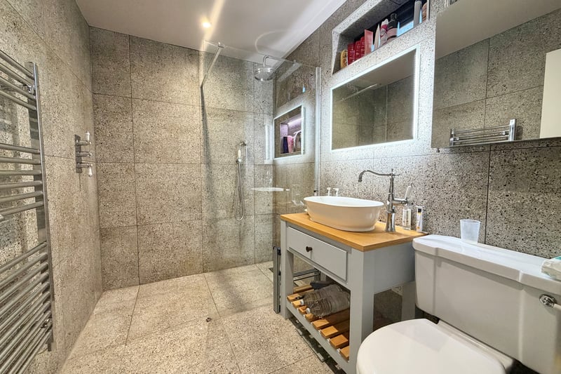 An additional highlight is the detached one-bedroom annexe, finished to the same high specification and offering underfloor heating throughout. A striking sky lantern floods the main living space with natural light, while the fitted kitchen includes a butler sink and Quooker hot tap. The bedroom is serviced by a contemporary ensuite shower room, making this annexe ideal for guests, multi-generational living or rental potential.