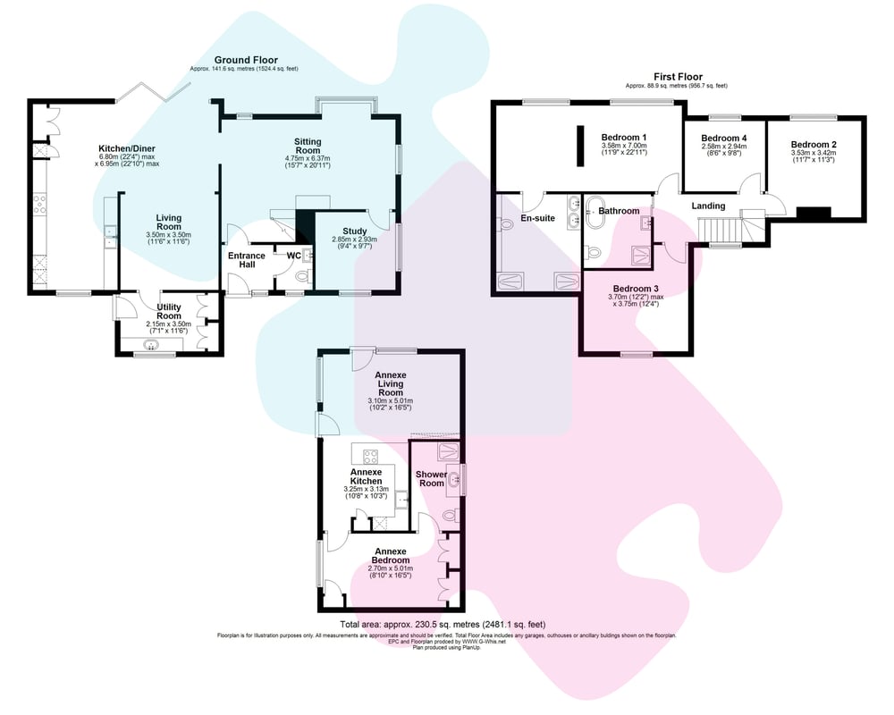 The living room is a warm and inviting space, enhanced by a charming log burner alongside underfloor heating, creating a perfect retreat in all seasons. Further ground floor benefits include a well-proportioned study, ideal for home working, and a practical utility room with space for appliances.