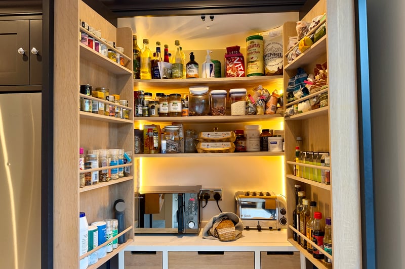 At the heart of the home lies a stunning Neptune kitchen, thoughtfully designed for both everyday living and entertaining. Features include extensive cabinetry, a large pantry, classic butler sink, Quooker boiling water tap, Fisher & Paykel fridge freezer, and two Neff ovens with warming drawer. Underfloor heating runs throughout the kitchen and seamlessly continues into the main living area.