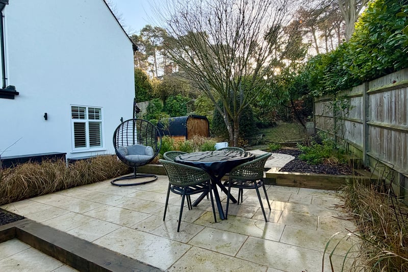The enclosed rear garden has been thoughtfully landscaped and provides a variety of seating areas, perfect for outdoor entertaining, along with a delightful sauna pod. The remainder of the garden is mainly laid to lawn and beautifully maintained, offering both privacy and tranquillity.