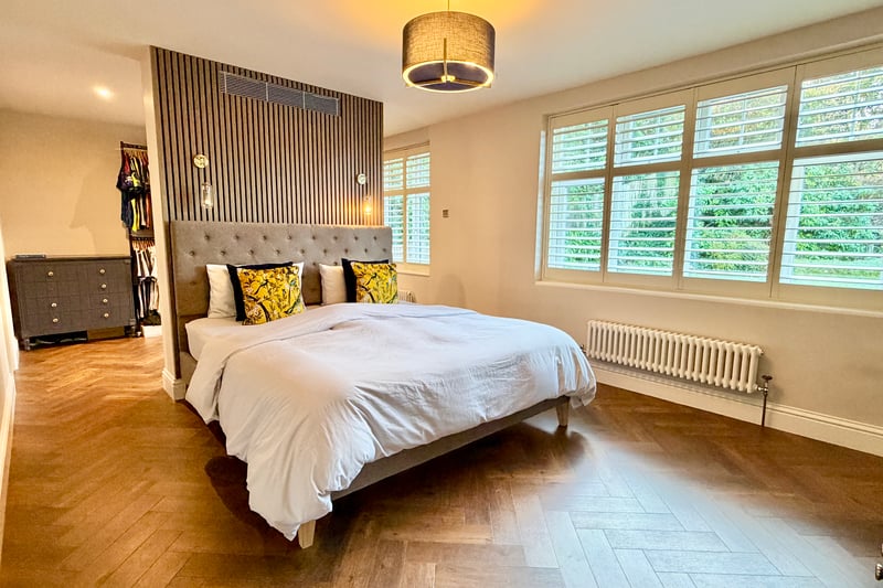 To the first floor are four well-appointed bedrooms served by a beautifully renovated family bathroom, featuring a generous walk-in shower and elegant free standing bath, all complemented by underfloor heating. The impressive principal suite enjoys air conditioning, a dedicated dressing area and a truly luxurious ensuite bathroom with underfloor heating, his and hers sinks, and twin shower areas — a standout feature of the home.